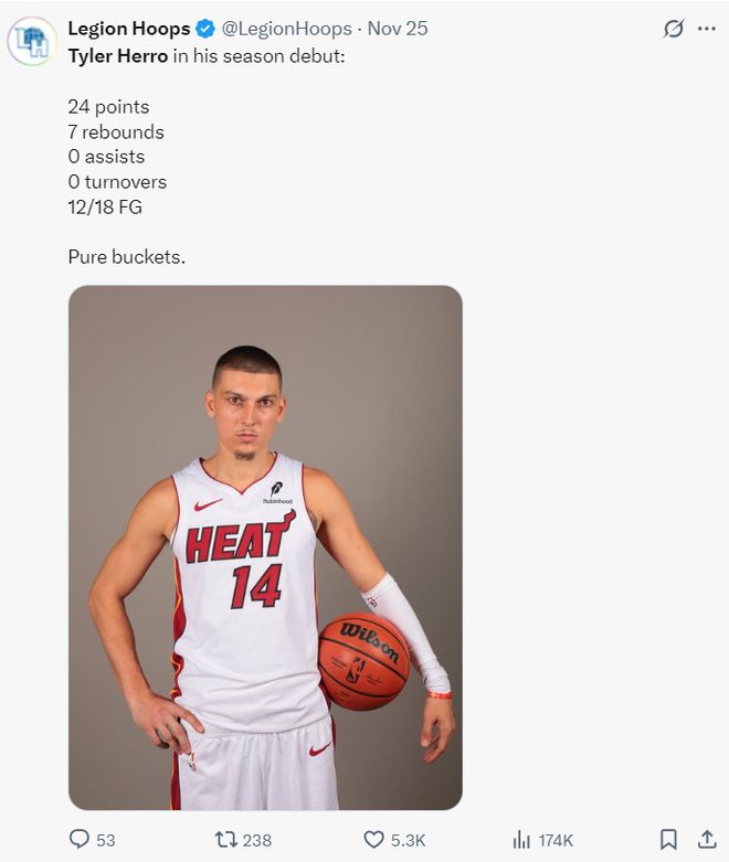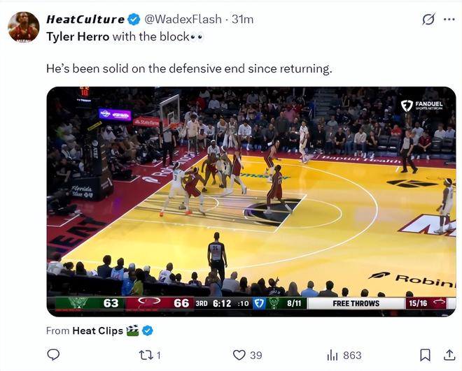 热火媒体高呼:泰勒-希罗才是迈阿密最出色的那个。